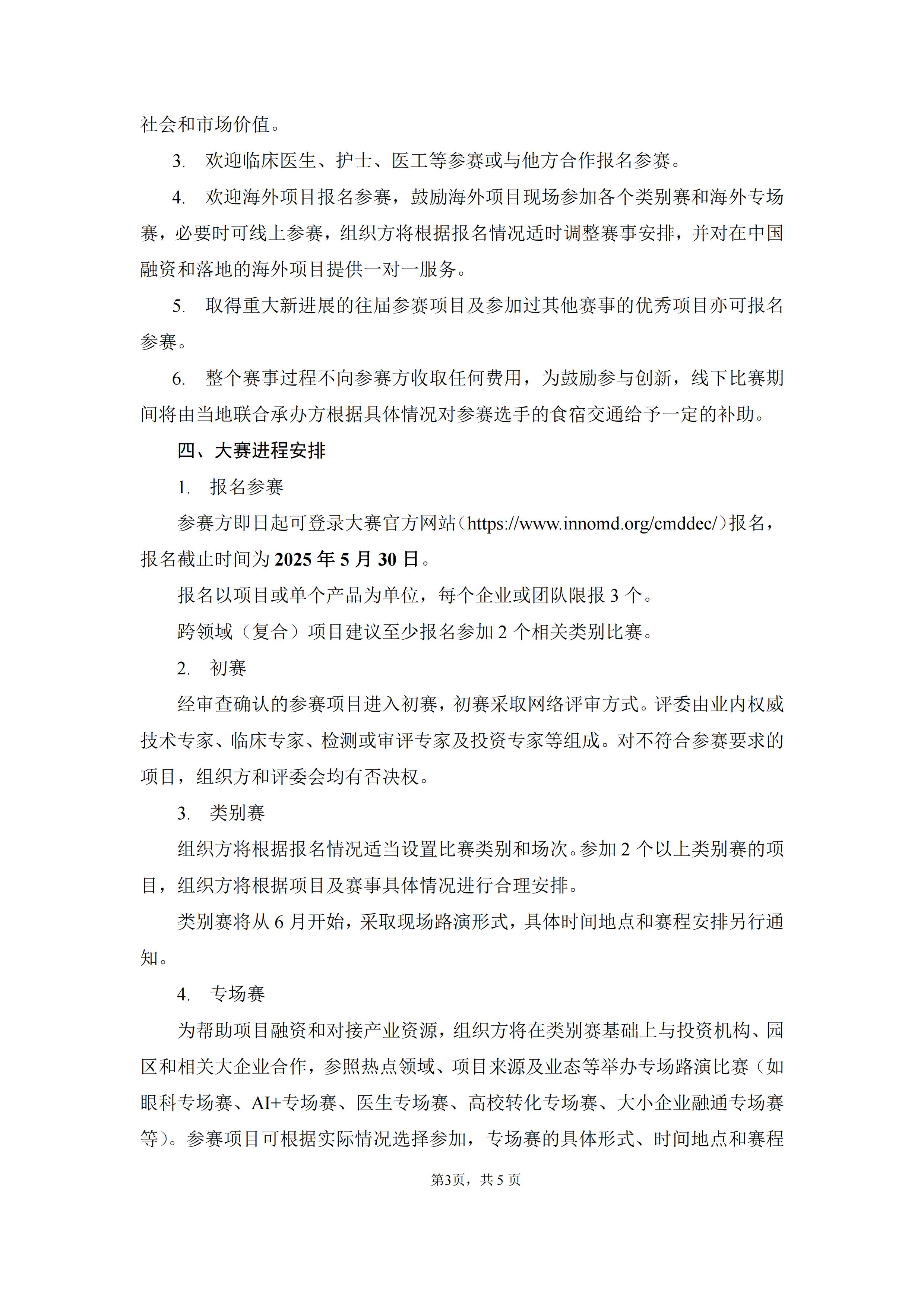 参赛方即日起可登录大赛官方网站(医疗器械创新网网://jiaerdi8.com/cmddec/)报名,报名截止时间为2025年5月30日。